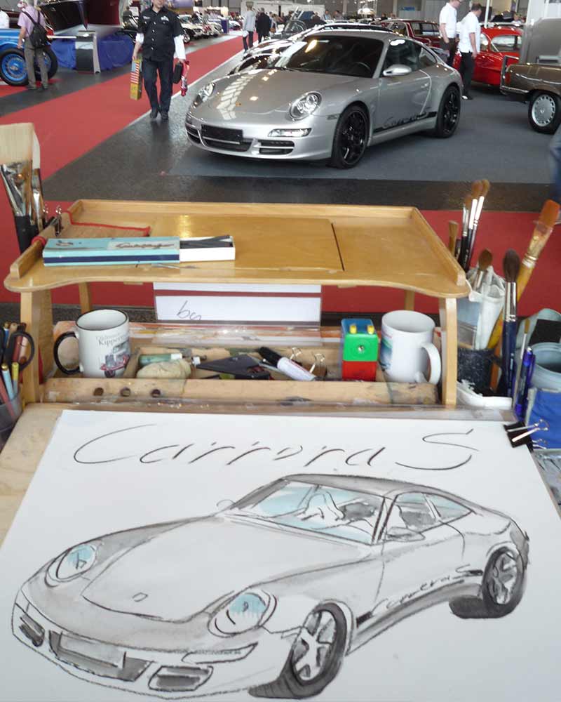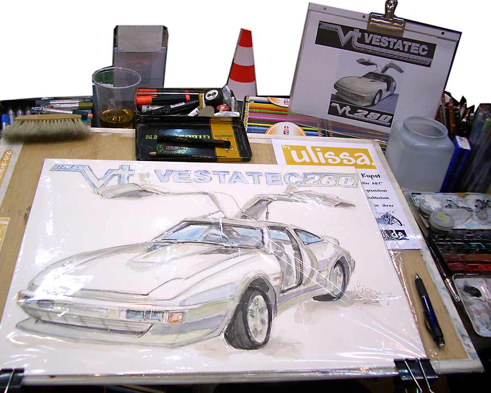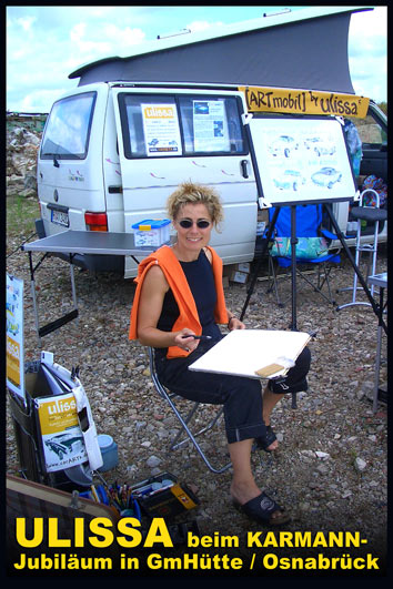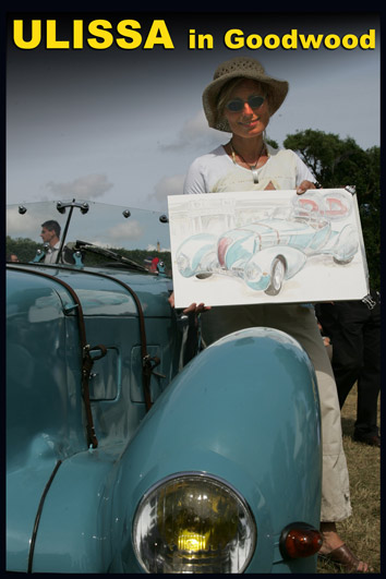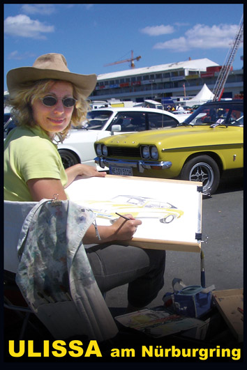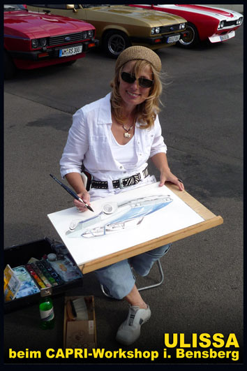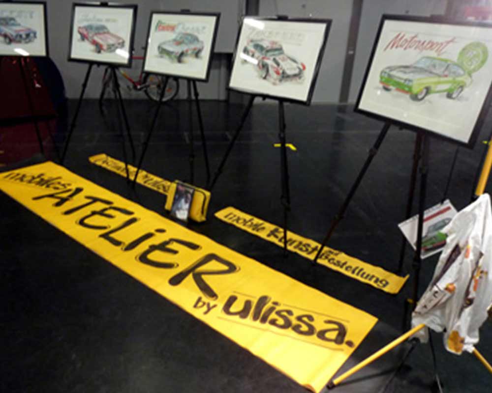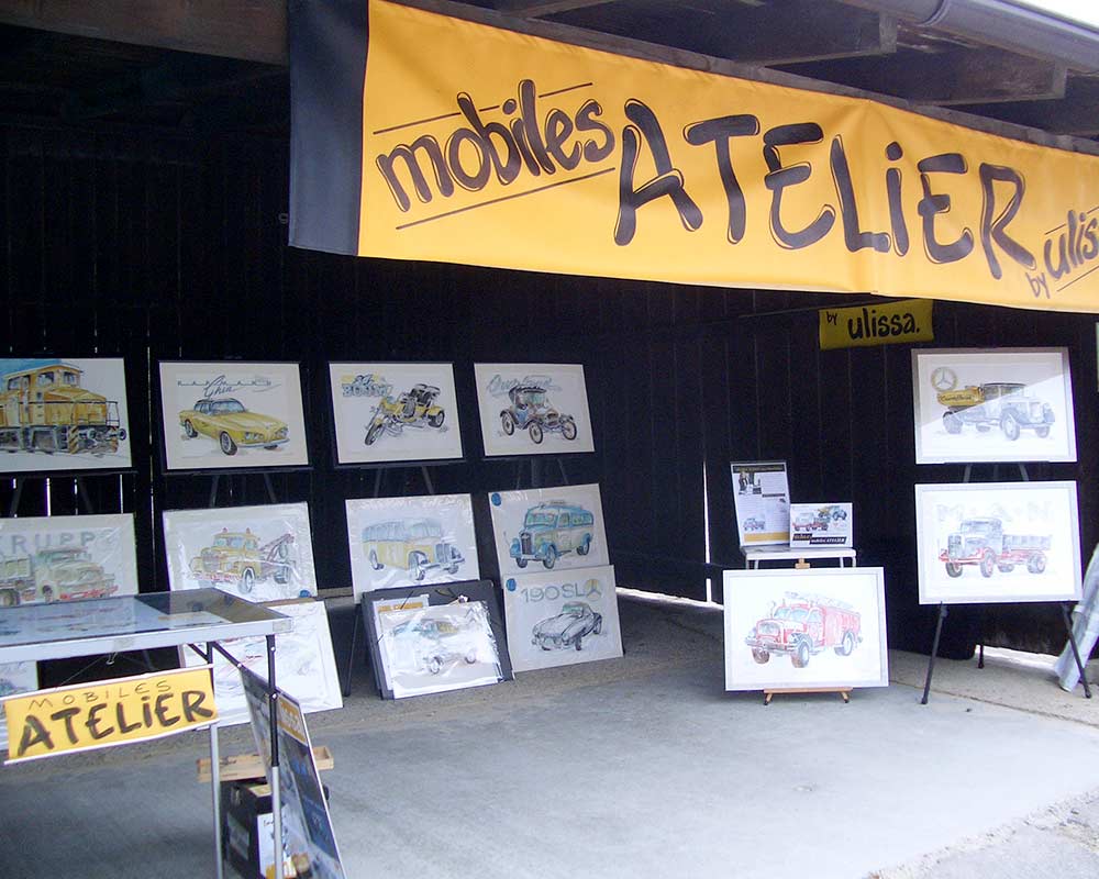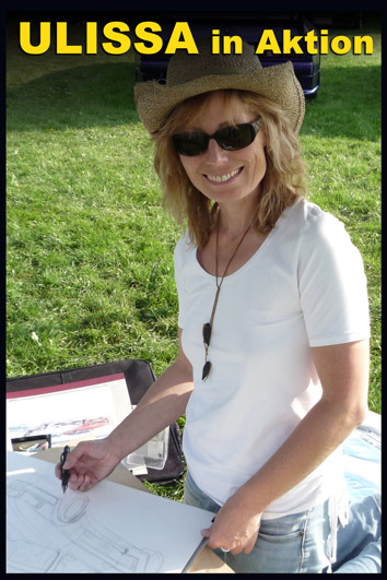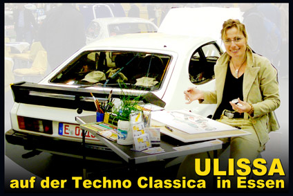 Ulissa ist eine der wenigen Künstler, die sich gern über die Schulter schauen lässt. Mit ihrem Mobilen Atelier ist sie DIE künstlerische Attraktion bei internationalen Messen und Oldtimer-Events. Fasziniert vom künstlerischen Schaffensprozess garantiert sie, ob Goodwood/UK oder TechnoClassica Essen für staunendes Publikum! Kunst zum Miterleben: von der frei hand gezeichneten Komposition bis zum fertigen Werk in Tusche-Aquarell...