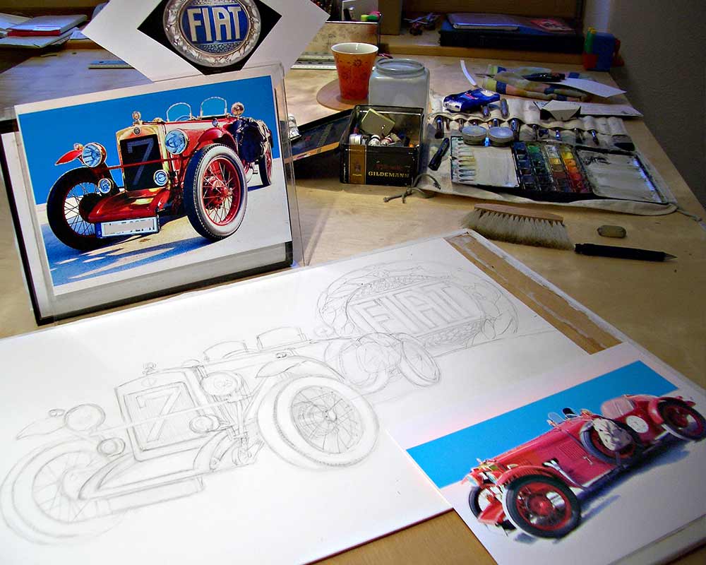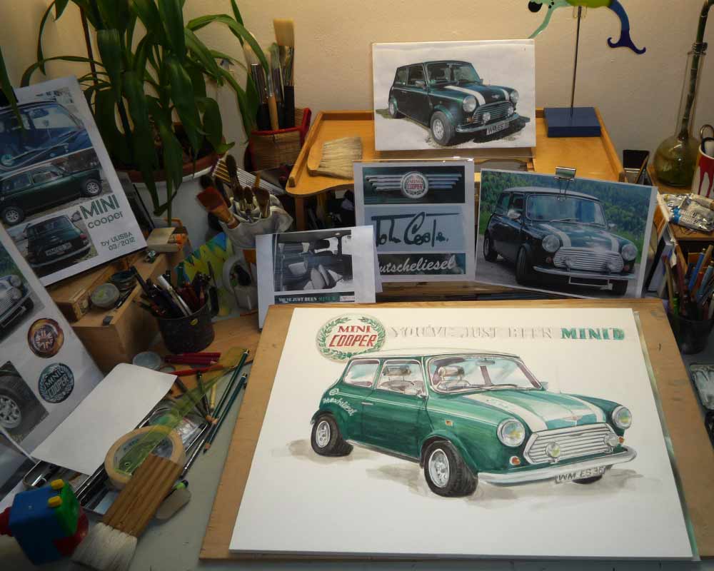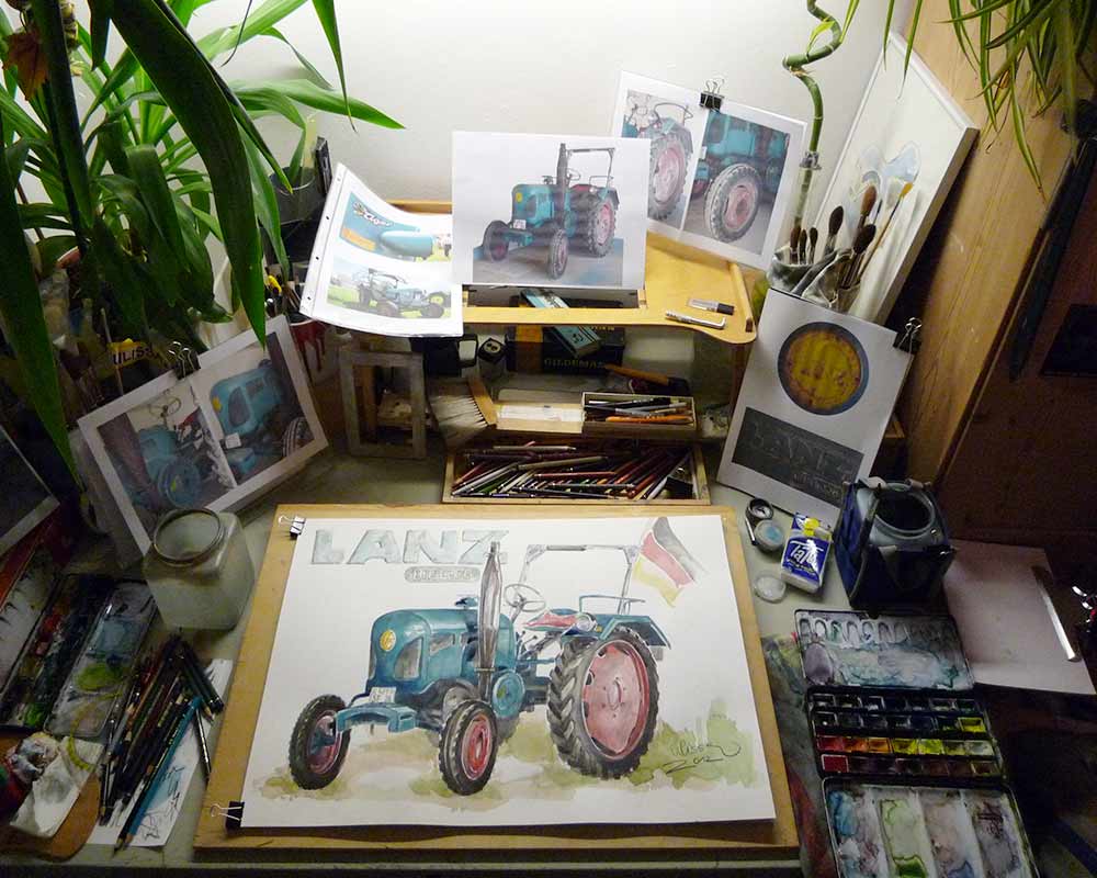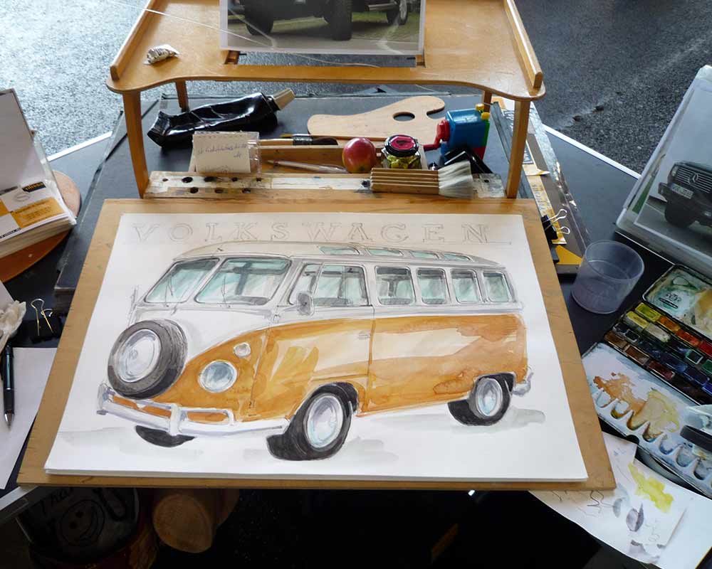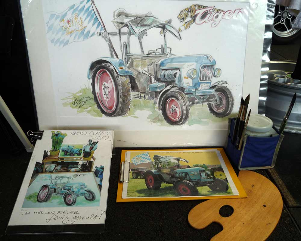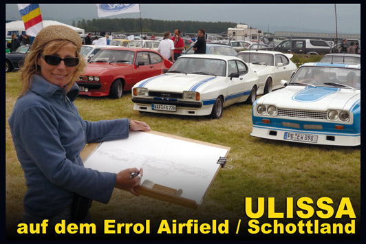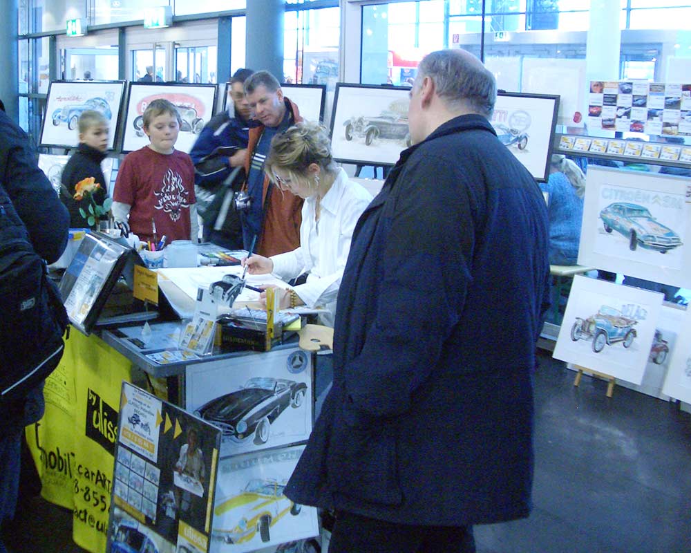 Ulissa ist eine der wenigen Künstler, die sich gern über die Schulter schauen lässt. Mit ihrem Mobilen Atelier ist sie DIE künstlerische Attraktion bei internationalen Messen und Oldtimer-Events. Fasziniert vom künstlerischen Schaffensprozess garantiert sie, ob Goodwood/UK oder TechnoClassica Essen für staunendes Publikum! Kunst zum Miterleben: von der frei hand gezeichneten Komposition bis zum fertigen Werk in Tusche-Aquarell...